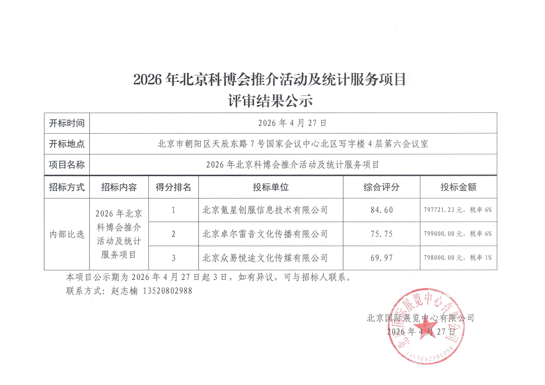 2026年北京科博会推介活动及统计服务项目评审结果公示